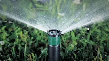 Статические дождеватели с форсунками спреевого типа используются для полива малых площадей. Радиус полива составляет от 0,5 до 6 метров. Работают по принципу распыления воды в виде спрея по заданному сектору. Сопло сконструировано так, что вода одновременно распыляется на всю площадь, заданного сектора полива. Тем самым достигается быстрое выпадение заданного количества осадков, что не возможно при роторном поливе. В наборе сопел имеются не только радиусные сектора полива, но и прямоугольные полосы, что очень облегчает проектирование системы автоматического полива на узких и длинных прямоугольных участках. Недостатком является то, что в ветреную погоду ветер сбивает струю и полив происходит не равномерно.